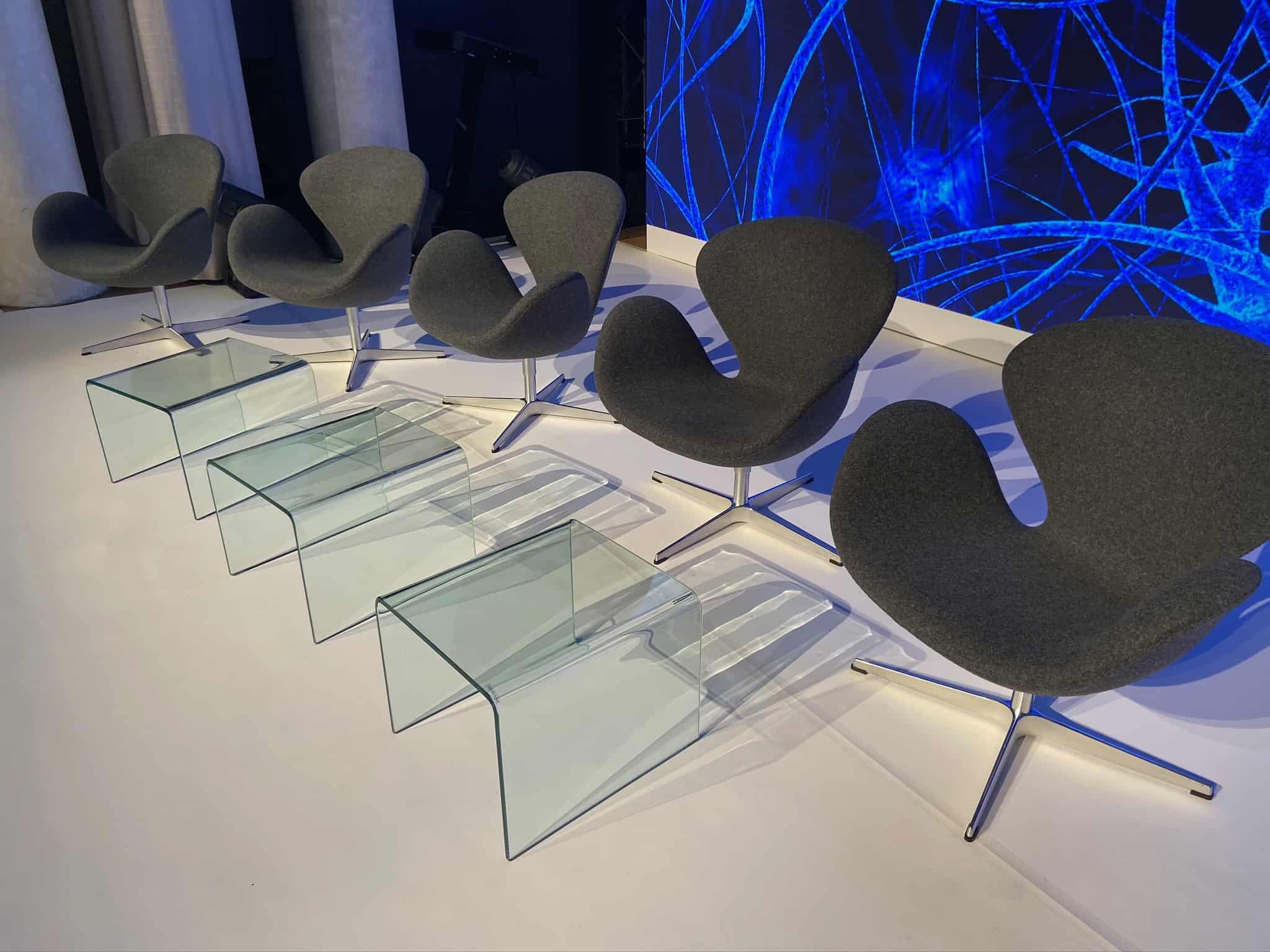 Wir haben die von Arne Jacobsen designten Schwan -Sessel neu bei uns im Mietpool aufgenommen. Der Design Klassiker eignet sich hervorragend für Podiums Diskussionen.